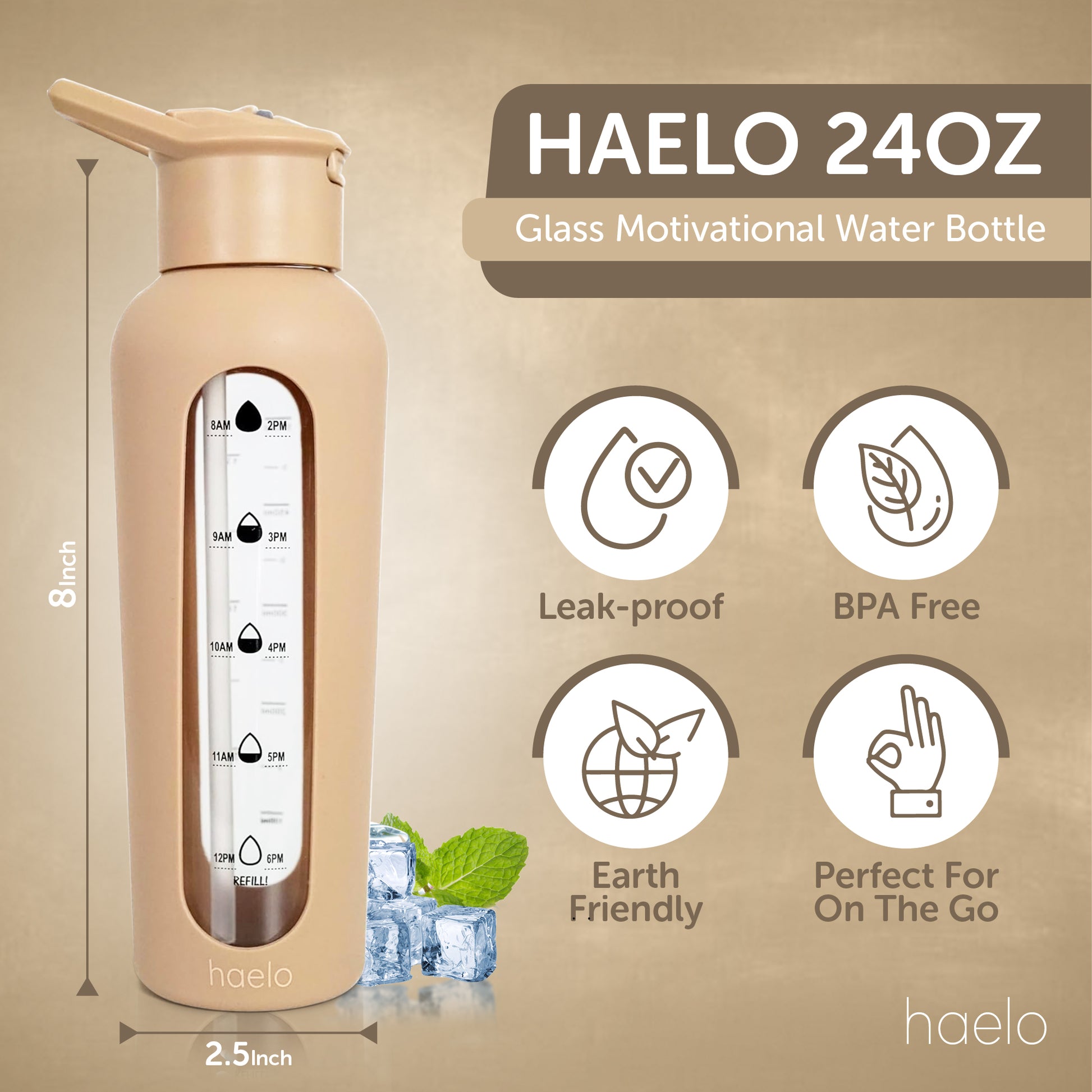 haelo motivational glass bottle 24 oz